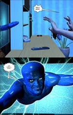 Sandra is looking for some soft porn movies in the TV when she enters a misterious channel in the remote. Some strange blur seems to appear in the screen, but a few seconds later, there's no mistake: a giant blue dick is coming off the screen. It belongs to The Blue Man, a modern electric daemon who comes to fulfill her nasty fantasies. He's been watching her for a long time, listening at her thoughts, taking note of her favorite TV programs, checking every aspect of her behavior as a TV consumer. He knows her secret wishes better that anyone. Sandra has been calling him unconsciously for a long time. Now, he's ready to do his job. Story & Art by MAUCHINK. |