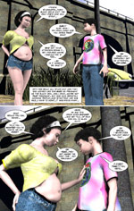 Gina's even dreaming about Donny now, and every waking moment is pulling her back to him sexually. Finally giving in to her desires, she takes Donny on a field trip into Panama City's downtown, where she buys illicit drugs from some guy named Cornbread. After puffing a joint or two, she decides to get freaky in the middle of the interstate freeway... till the cops show up. Meanwhile, Sandra discovers her inner-lesbian self... with her new friend Shelly. Together, the two of them gorge on pizza and chocolate and then discover a secret in Gina's bedroom. A really BIG and LONG secret. Story & Art by JAG27. |